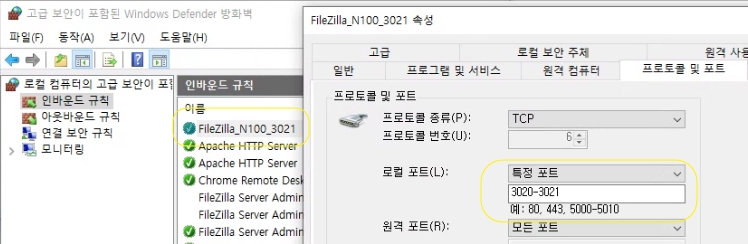 방화벽 인바운드규칙설정.